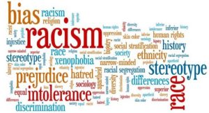 Racism – social issues and concepts word cloud illustration. Word collage concept.